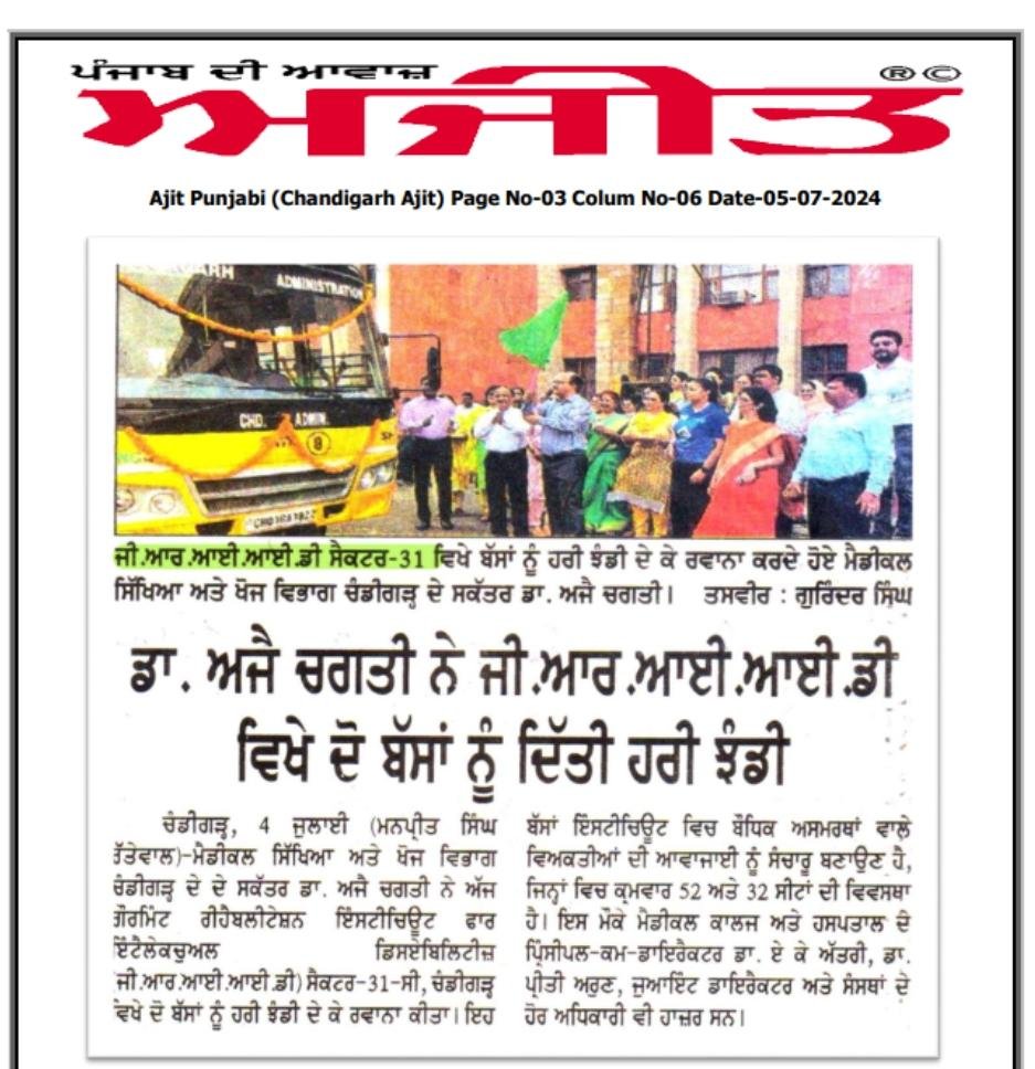 Sh. Ajay Chagti, IAS, Secretary, Medical Education & Research, UT, Chandigarh Flagged off Two Buses For Persons With Intellectual Disabilities.